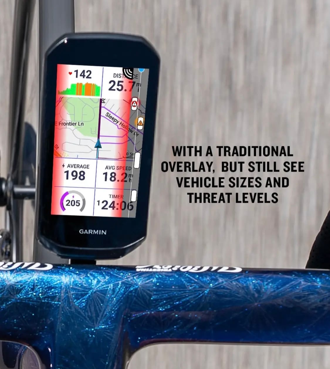 This is the improved feature that Garmin is selling the RearVue 820 on. There are three new ways to view approaching traffic on your Edge with the Varia RearVue 820. Tracking is available on all Edge devices but according to Garmin advanced vehicle tracking is only available on the Edge x40 and x50 devices.