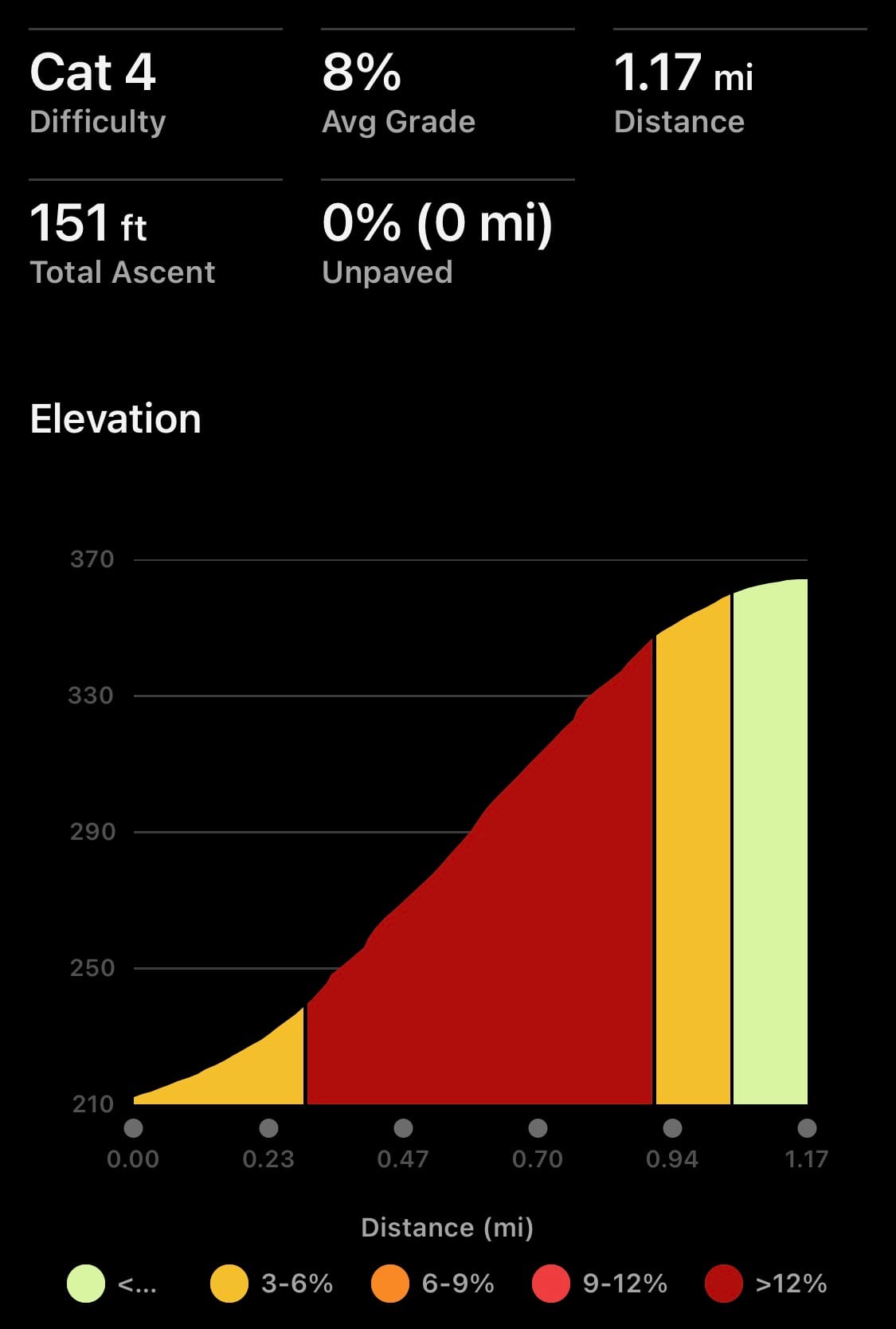 From the bottom of the reservoir you head up the penultimate hill. At 1.17miles and an avaerage gradient of 8% this is a tough hill, but it’s rideable for most people.